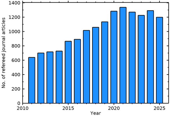 The plot below shows the number of articles written by current HelioIndex authors each year for the last 15 years.